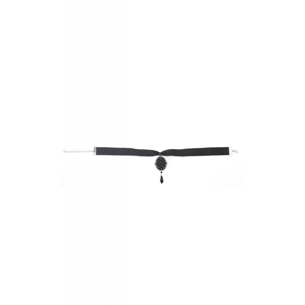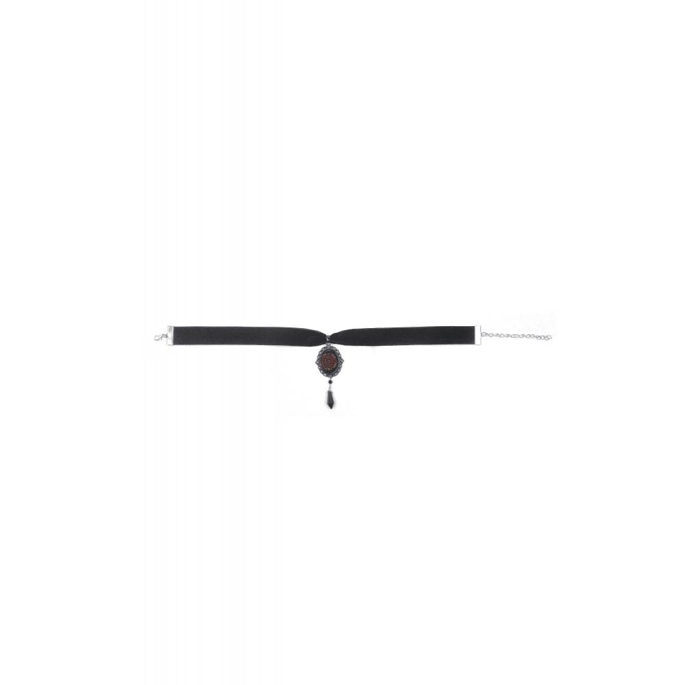 The strap of this gothic choker is made of velvet fabric. A metal pendant with a rose and a bead was set in the middle. Adjustable metal buckle design. No elastic fabric.