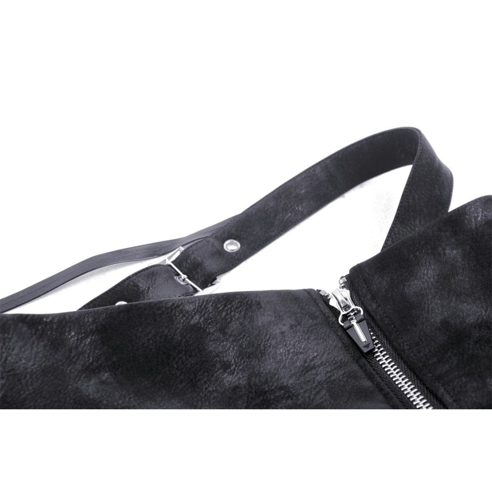 This short draped skirt is faux leather splice plaid fabric. The faux leather waist is irregular and with a buckle strap. Zipper on the back for putting it on and off. A-line silhouette and no elastic fabric.